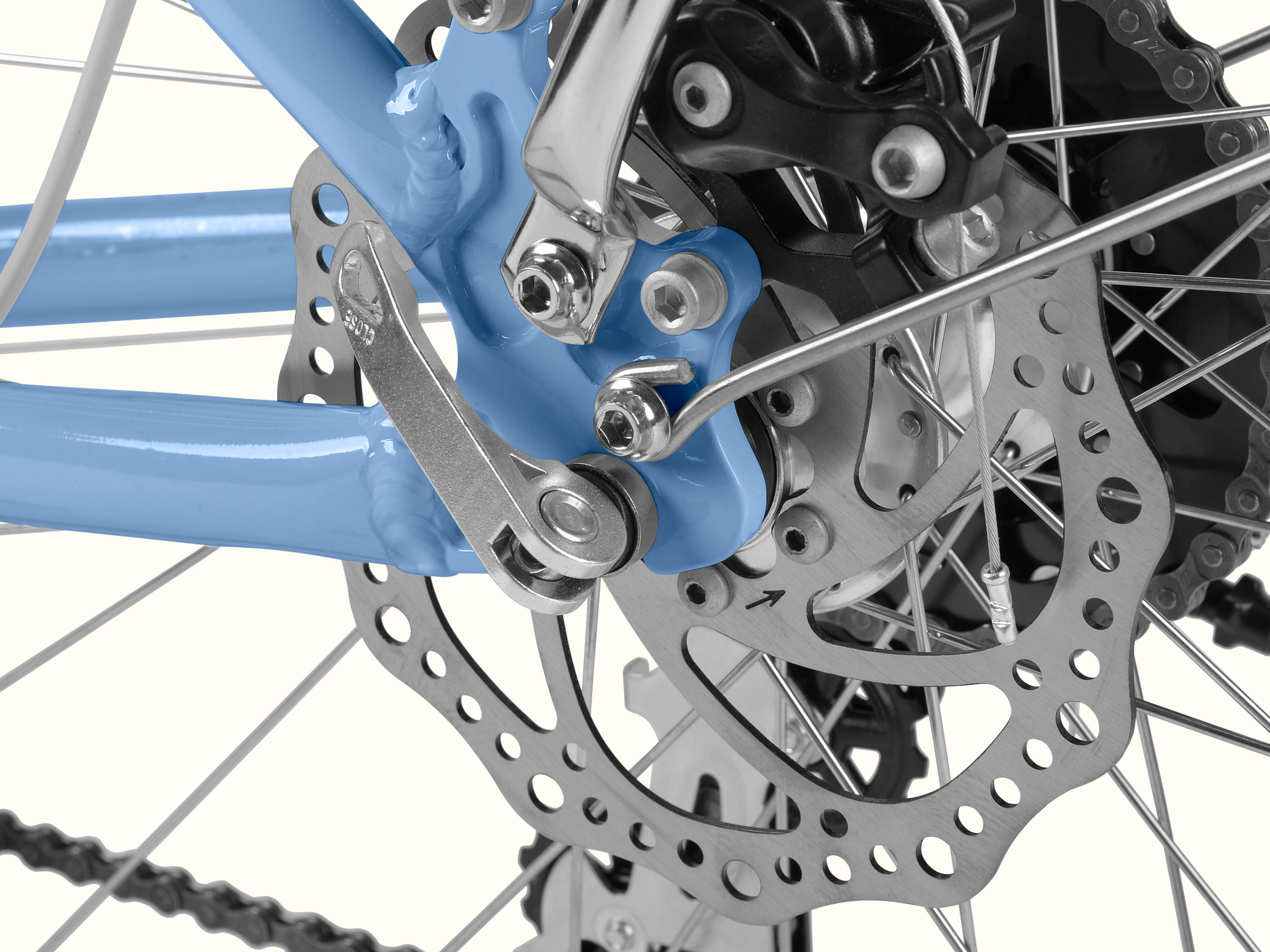 This urban bike’s versatile Shimano Altus 8-speed drivetrain is perfect for the ups and downs of busy city streets.