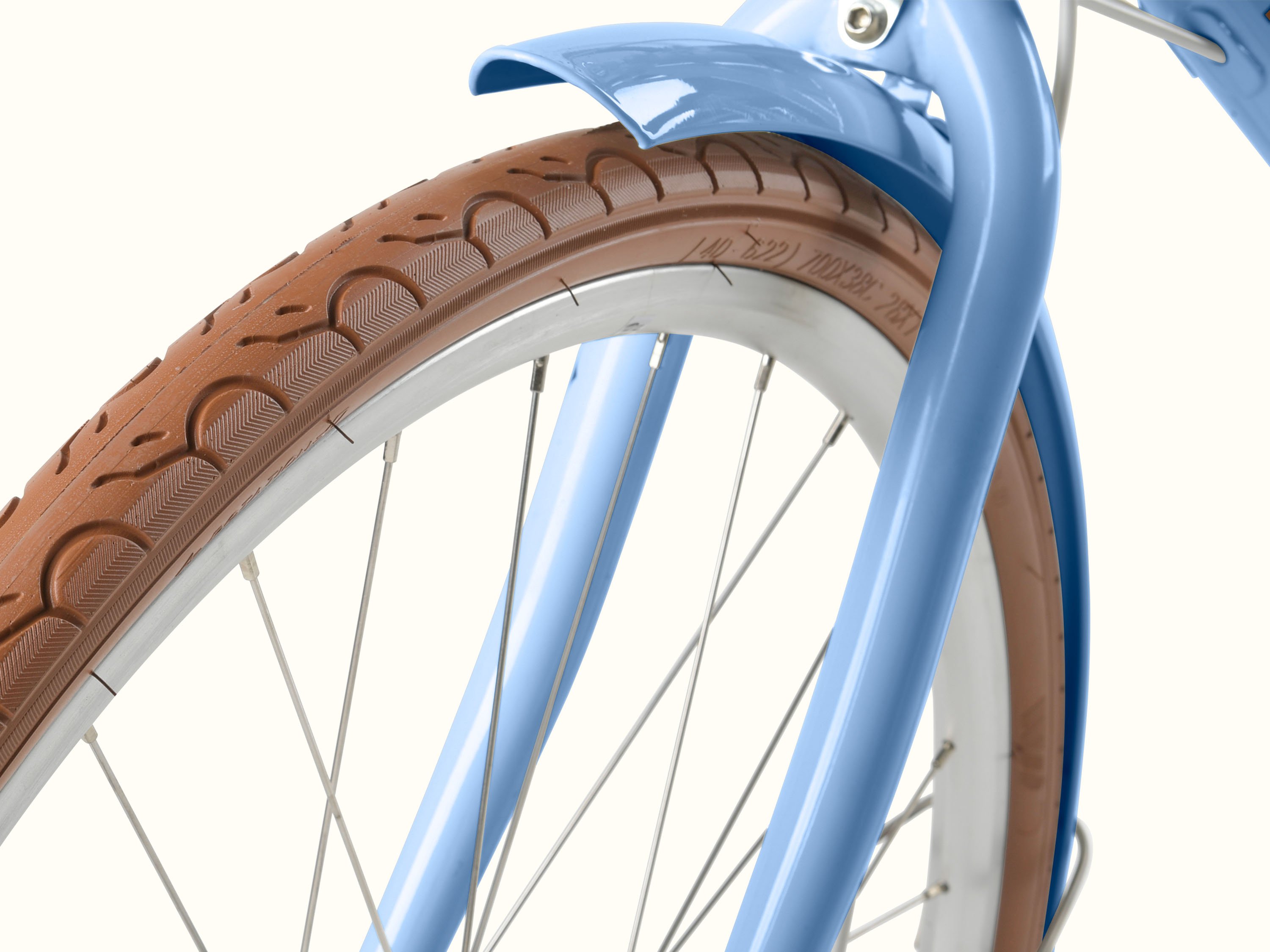 This city bicycle’s aluminum components (hubs, pedals, kickstand, seatpost, & crankset) keep your ride lighter, easier to maneuver, and safe from rust.