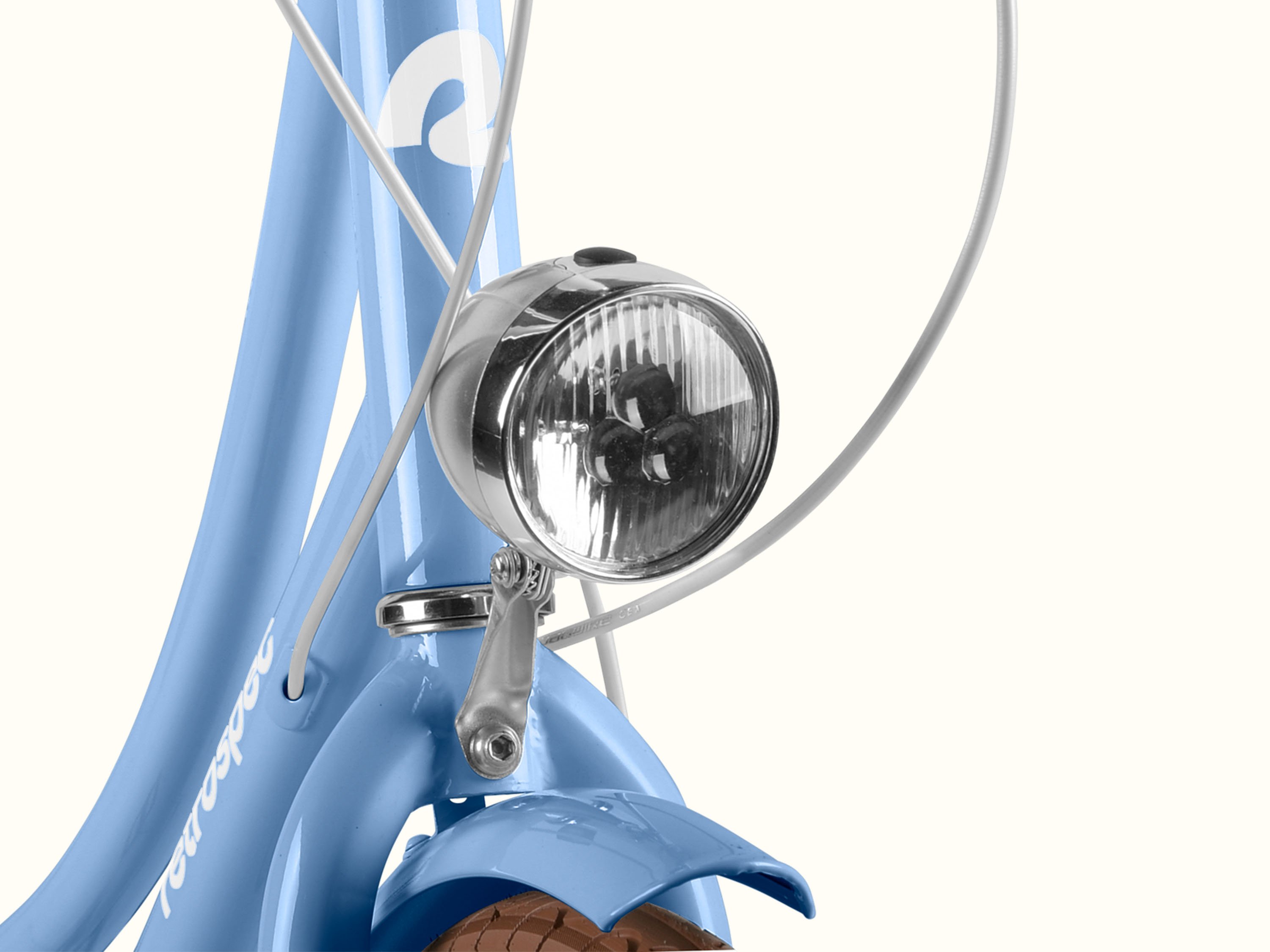 The vintage style headlight illuminates your path and helps keep you safe while riding in low light.