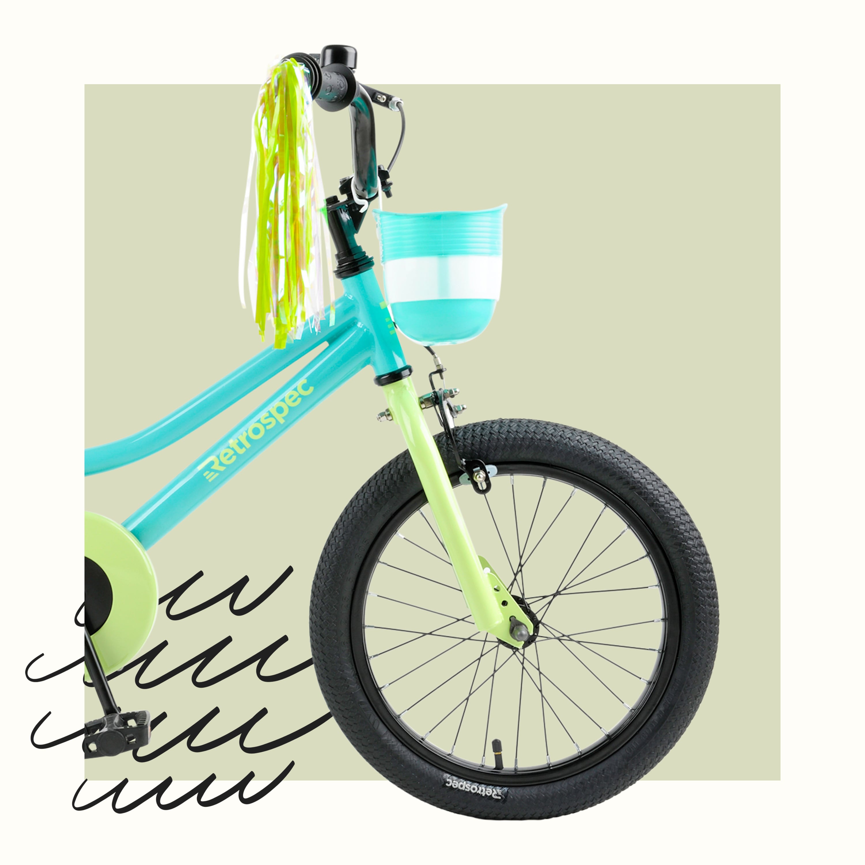 This sporty bike is perfect for little riders speeding off to the races. Bright colors, fun streamers, baskets, built-in water bottle holders, and more make Koda the coolest kid bike to ever hit the sidewalk.